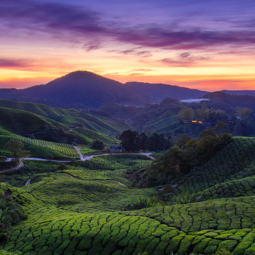 Relax in the lush greenery of Cameron Highlands, famous for its tea plantations, strawberry farms, and cool climate. Visit the BOH Tea Plantation, Butterfly Garden, Mossy Forest, and enjoy fresh local produce.